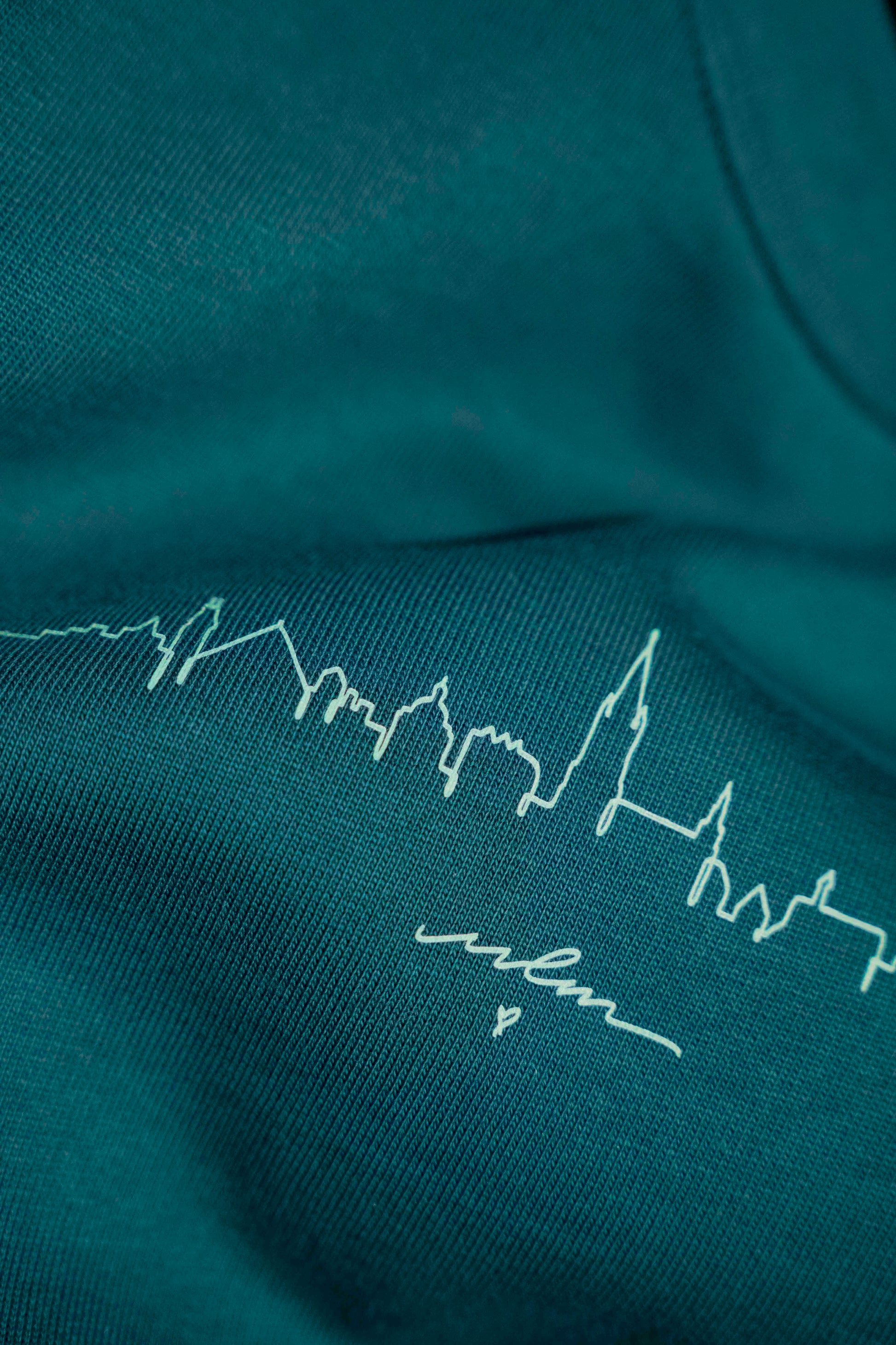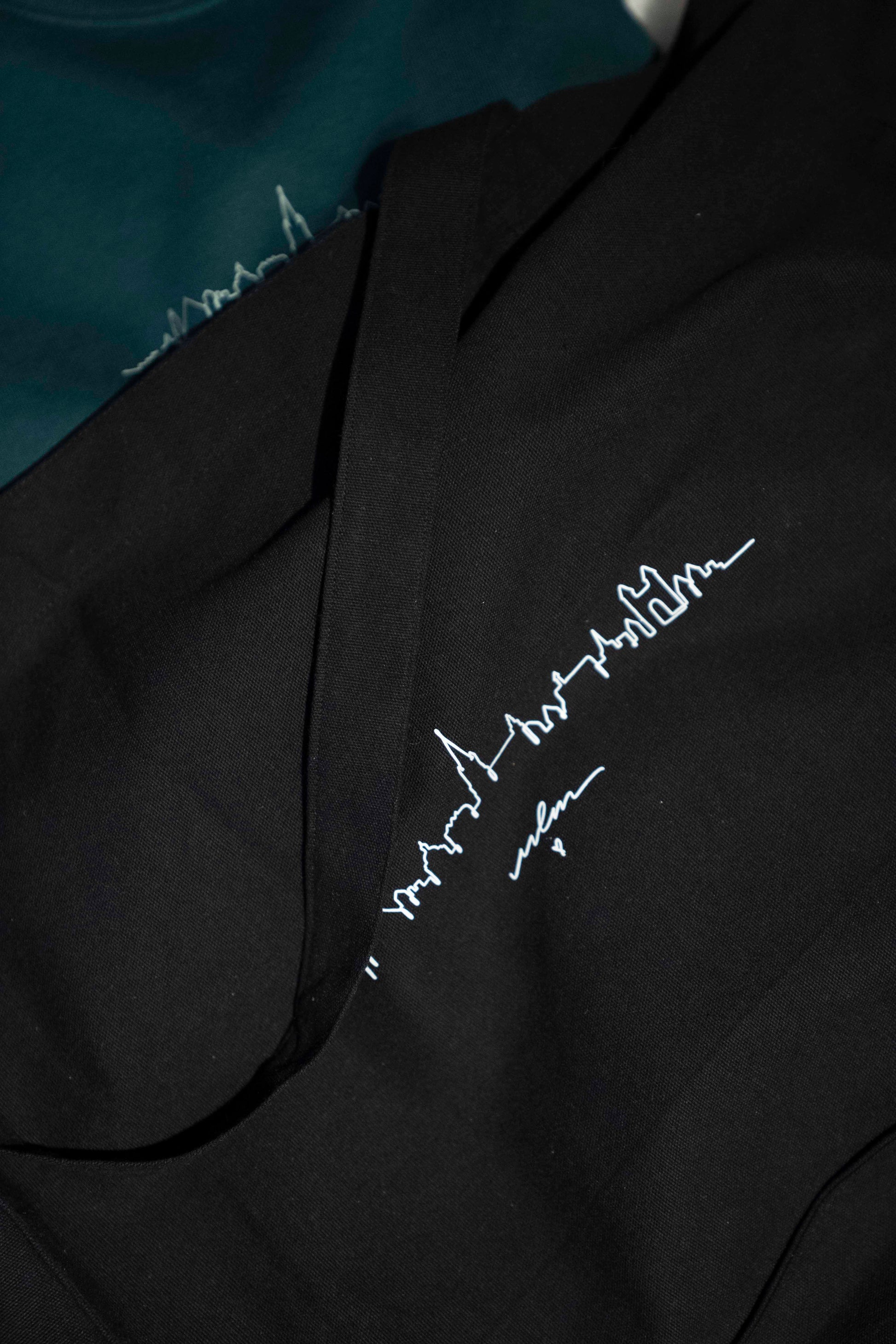 Ich habe die schönsten Gebäude der Ulmer Skyline herausgepickt und sie als One-Line von Hand gezeichnet. Dazu noch ein kleiner Ulm-Schriftzug und ein Herz und fertig war mein "Ulmliebe"-Design. Auf der Rückseite der Tasche findest du unten rechts mein Logo.